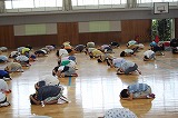 防災の日に合わせて、シェイクアウトの練習を行いました。シェイクアウトとは、地震の揺れから自分の命を守る基本行動です。宝っ子は「だんごむしのポーズ」で避難姿勢を覚えています。