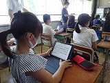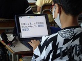 また、ロイロノートを使い、タブレット端末から自分の考えを教師機に送り、大型提示装置で意見を交流させるという方法も取り入れました。恥ずかしさから、発言するのが苦手だと感じている児童でも、タブレット端末を使うことで発言がしやすくなるようです。また、大型提示装置に多くの児童の考えが並ぶので、友だちがどんな考えをもっているかを把握しやすいという利点もありました。