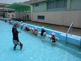 プール開きを行いました。保護者の皆様には、水着や水泳帽等の用意をしていただき、ありがとうございました。