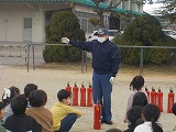 避難訓練後には、1・2年生は煙体験、3・4年生は水消火器体験、5・6年生は校舎3階から救助袋による降下体験を行いました。消防署員や教員の説明をしっかりと聞き、真剣な表情で臨んでいました。万が一の災害に備え、意識を高めていきたいと思います。