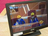 災害対策本部となる部屋には大きなモニターがありました。正確な情報をいち早く多くの職員が共有できるような工夫がされていました。