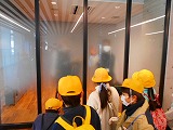 ガラス張りの庁舎なので、建物の中はとても明るく、温かいです。机や棚等も入っていない状態での見学だったので、まだ市民のためにお仕事をする場所には見えません。「ホテルみたい」「泊まってみたいな」などとつぶやいている子もいるほど、おしゃれな空間でした。