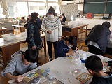 5年生の児童が講師の先生をお迎えし、七宝焼制作を行いました。これまでにプレートに図案を書き写し、線引きまでを終えて準備を進めてきました。動物や風景など、子どもたちはそれぞれのアイデアを生かして丁寧に描いていました。