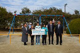 中部美化企業株式会社様」が、宝小学校の遊具設置のために使ってほしいと、あま市に多額な寄付をしてくださいました。それにより、この度、宝小学校に立派なぶらんこが新しく設置されました。