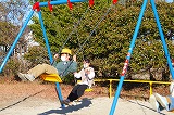 「向こうに行くときに足をぴ~んと伸ばすと高くまで漕げるよ」