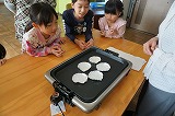 パーティーでは、ダンスを楽しんだあと、みんなで「べっこう飴づくり」に挑戦しました。砂糖を火にかけると、ふんわり甘い香りが広がり、きれいな飴色になると子どもたちから歓声があがりました。